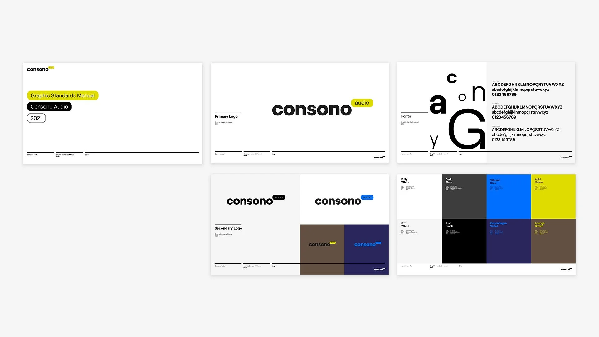 I developed a comprehensive brand system that sharpens Consono Audio’s positioning while remaining flexible across digital and physical touchpoints. At its core is a reduced logo mark, supported by a bold typographic system and a high-contrast color palette that reflects both technical clarity and creative confidence. The resulting identity creates a strong visual presence across brand guidelines, digital applications and spatial contexts, providing Consono Audio with a scalable platform for future growth.
